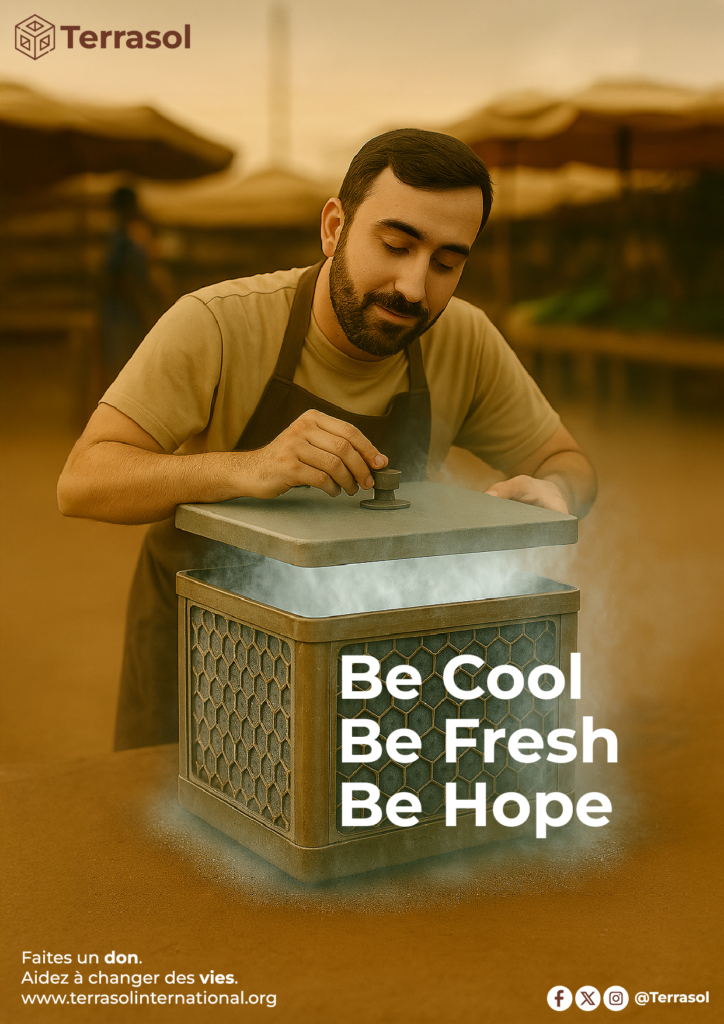 une glacière low-tech, 100 % autonome, fonctionnant uniquement grâce Ă  l’Ă©vaporation d’eau.
