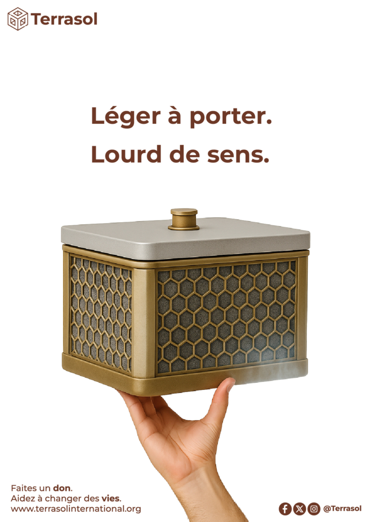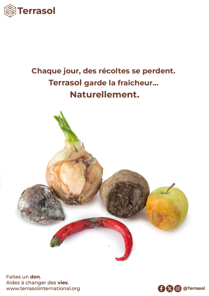 ♻️ Conçue à partir de matériaux recyclés (plastique et coton), TerraSol prolonge la durée de vie des aliments jusqu’à 15°C de moins que l’extérieur, sans électricité.